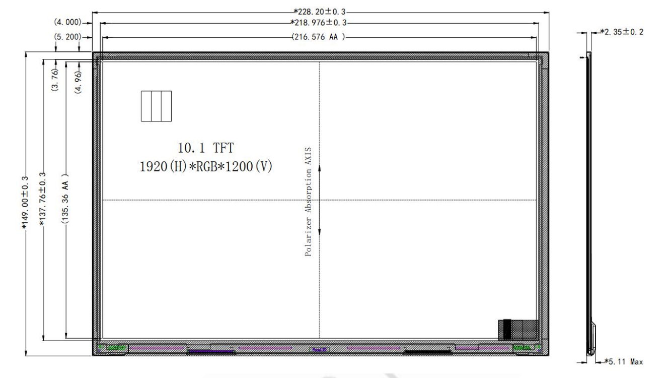 High Resolution 10.1 inch TFT LCD Display For medical devices TFT-H101D16WUIWZKN30 TFT Display 1920x1200 228.2x149x2.35 10.1 10.1 216.576x135.36 IPS 1000cd/m2 FFC-30 pin eDP Anti-static ESD 8KV -20~70℃ +3.3V