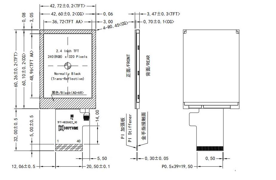 • 型號: 2.4寸防眩光顯示屏-戶外防反光顯示屏 TFT-H024A22AVIST1G40